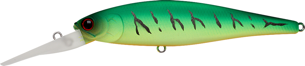 The original Pointer Series features a lively, powerful action with a distinctive side-to-side slide. The POINTER DD suspends at depths of 7 - 8 feet, emitting an intriguing bass-calling vibration while in this state. The Pointer DD excels when fishing is tough or when fish are staying around staging areas, particularly during the spawning or post-spawning seasons. This series is the best bait for targeting those seasonal staging areas. Its low center of balance causes the lure to wobble and vibrate whenever the retrieve is paused, stimulating the fish's lateral line and triggering an instinctive biting response. This rolling action prompts strikes even during non-feeding times. Truly a miracle bait, the POINTER DD is effective for bass, trout, musky, and a wide variety of other fish species.