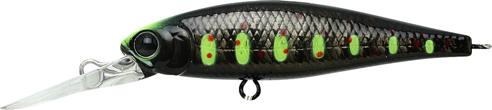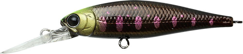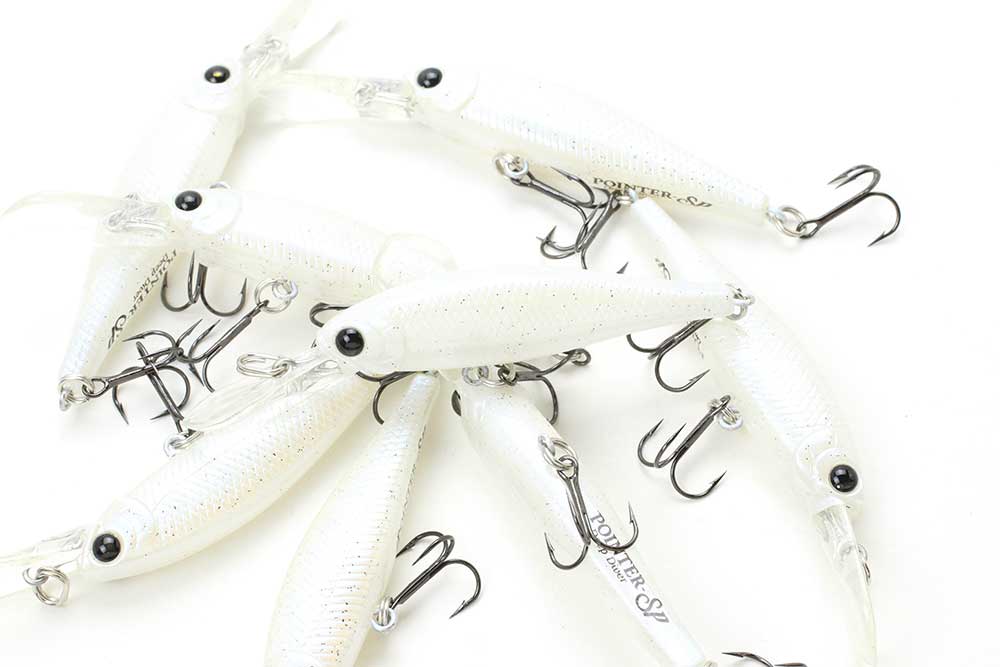 The original Pointer Series features a lively, powerful action with a distinctive side-to-side slide. The POINTER DD suspends at depths of 7 - 8 feet, emitting an intriguing bass-calling vibration while in this state. The Pointer DD excels when fishing is tough or when fish are staying around staging areas, particularly during the spawning or post-spawning seasons. This series is the best bait for targeting those seasonal staging areas. Its low center of balance causes the lure to wobble and vibrate whenever the retrieve is paused, stimulating the fish's lateral line and triggering an instinctive biting response. This rolling action prompts strikes even during non-feeding times. Truly a miracle bait, the POINTER DD is effective for bass, trout, musky, and a wide variety of other fish species.