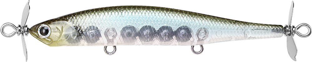 The Lucky Craft® Screw Pointer approaches bass with a subtle, rhythmic action similar to the Spy Bait technique made popular by the Japanese. The compact body allows the lure to be cast extra-long distances. A slow sinking action, props, and a slow rolling action are effective even in tough conditions. The prop or screw on the lure create a unique water movement that's particularly effective in catching pre-spawn bass or schooling smallmouth.