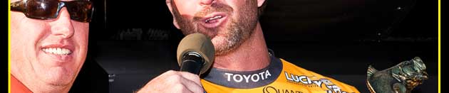 The winning combos were a LVR D7 and an LVR D10 in Aurora Gold both fished on the new Quantum Smoke 6.3 to 1 reels and a 7-foot Medium Quantum PT Cranking rod (same as KVD’s red one’s only this one is black). My line was Vicious Pro Elite 12-pound test which is equivalent to the diameter of most 10-pound Fluorocarbon line. I fished this rig very slow. It was more of a dragging action than it was a ripping action. |